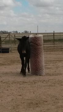 Horses are kept in a paddock about 80 foot by 80 foot with 12 foot by 12 foot shelter and plastic water tub. 3 to 5 electric horse guard fencing. Horses will be fed with feed provided by owner or CWRS. If owner purchases own feed that exceeds the amount that can fit in room, hay can be stored outside the pen on a pallet and covered with a